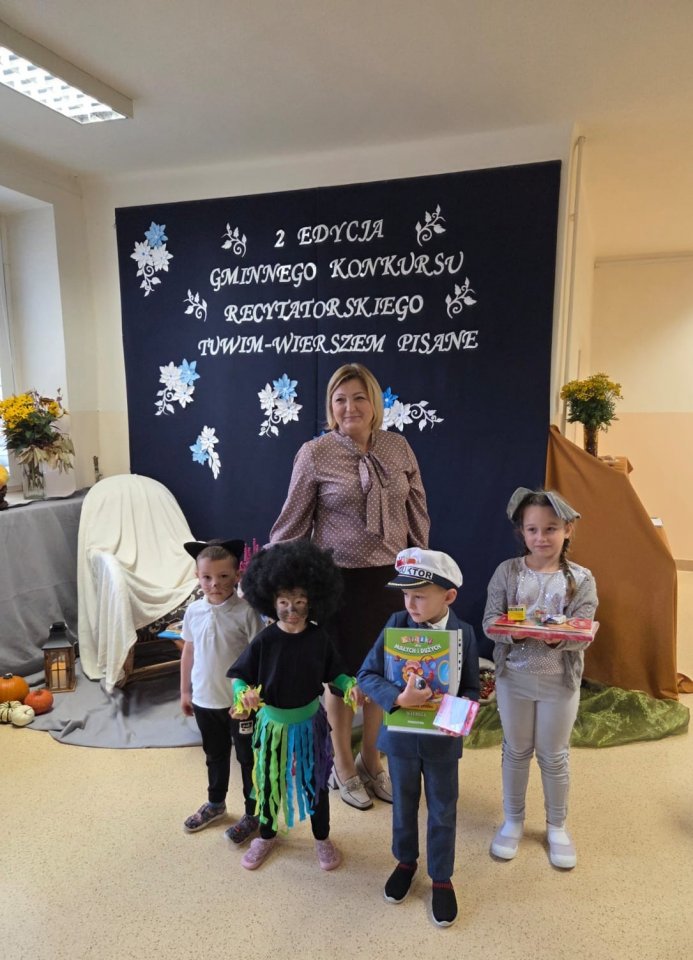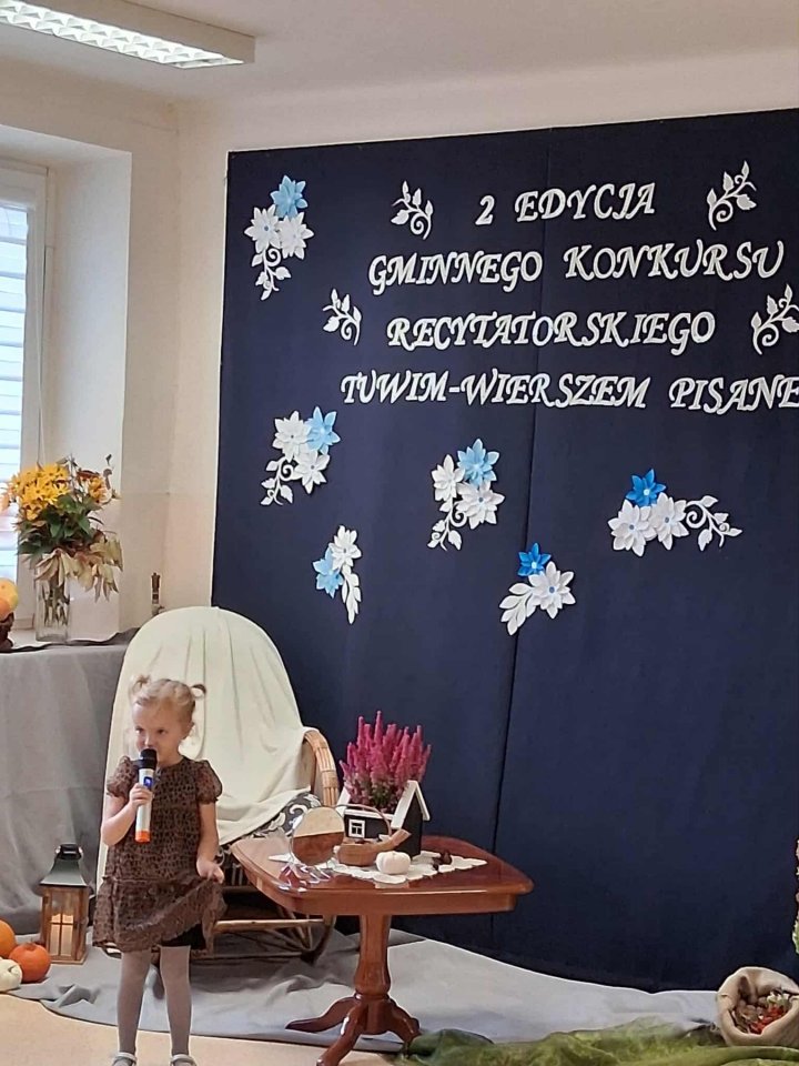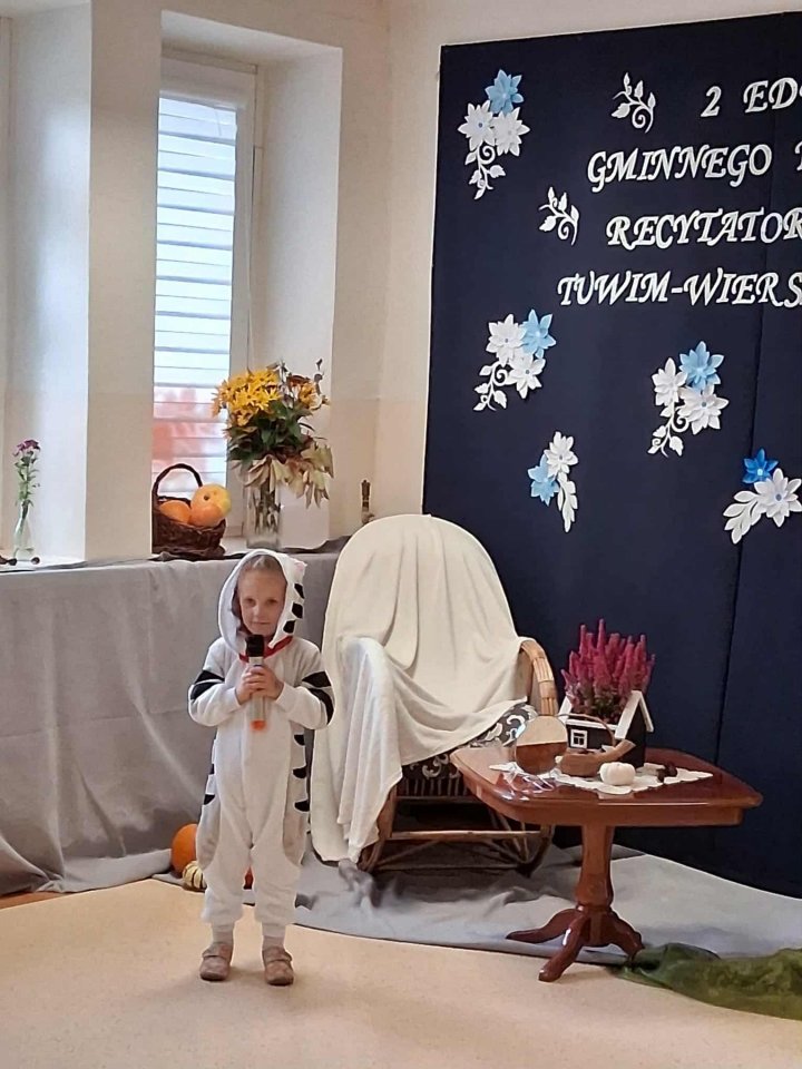 Wydarzenie zgromadziło przedszkolaków z terenu gminy, którzy z ogromnym zaangażowaniem i talentem prezentowali wiersze autorstwa Juliana Tuwima – jednego z najwybitniejszych poetów literatury dziecięcej.